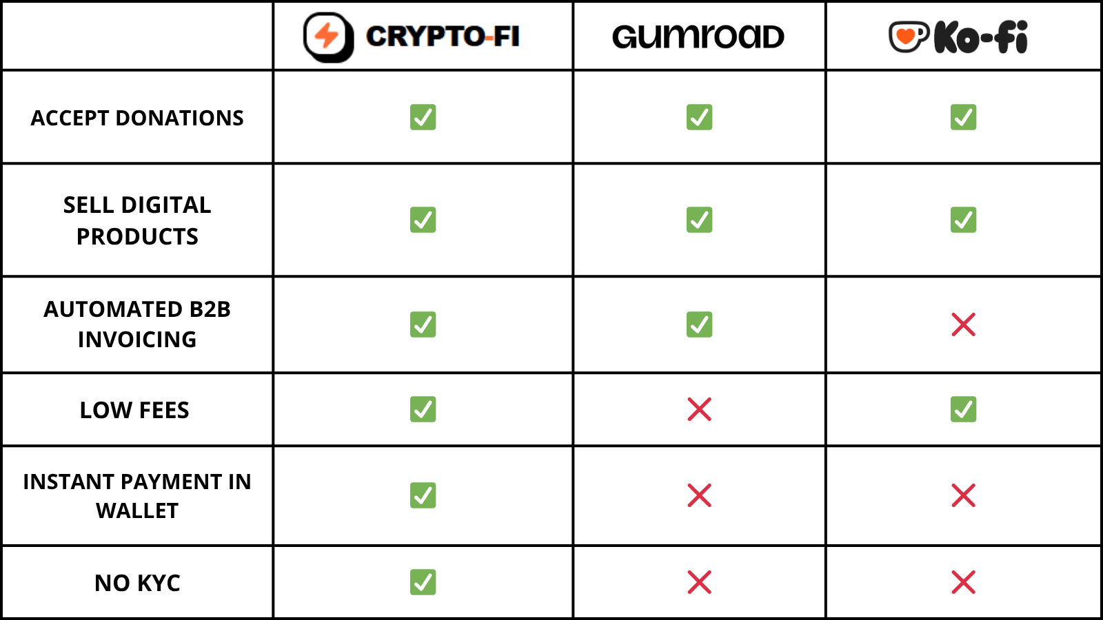 | Feature | Gumroad | Crypto-Fi |